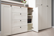 Прихожая «Остин» – воплощение современного классического стиля. Лаконичность, строгие линии, контрастная фурнитура, функциональность и элегантность – отличительные черты этой коллекции. Прихожая доступна в двух цветовых решениях – белый/графит в сочетании с теплым древесным декором. Вместительная шкафная группа позволит оптимально организовать хранение, а продуманные габариты тумбы, комода и зеркала дают возможность собрать различные компоновки.