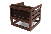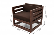 Каркас изделия выполнен из натурального и экологически чистого массива сосны. Чехлы съемные, в комплекте две приспинные подушки. Основанием служит реечное дно из массива сосны. Данная мебель предназначена для закрытых помещений или веранд с крышей, прямой солнечный свет и дождь ей противопоказаны.