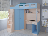 Кровать-чердак "Астра 7" дуб молочный-голубой