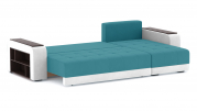 Угловой диван-кровать "Дубай" велюр Галакси Азур 12/экокожа белая
